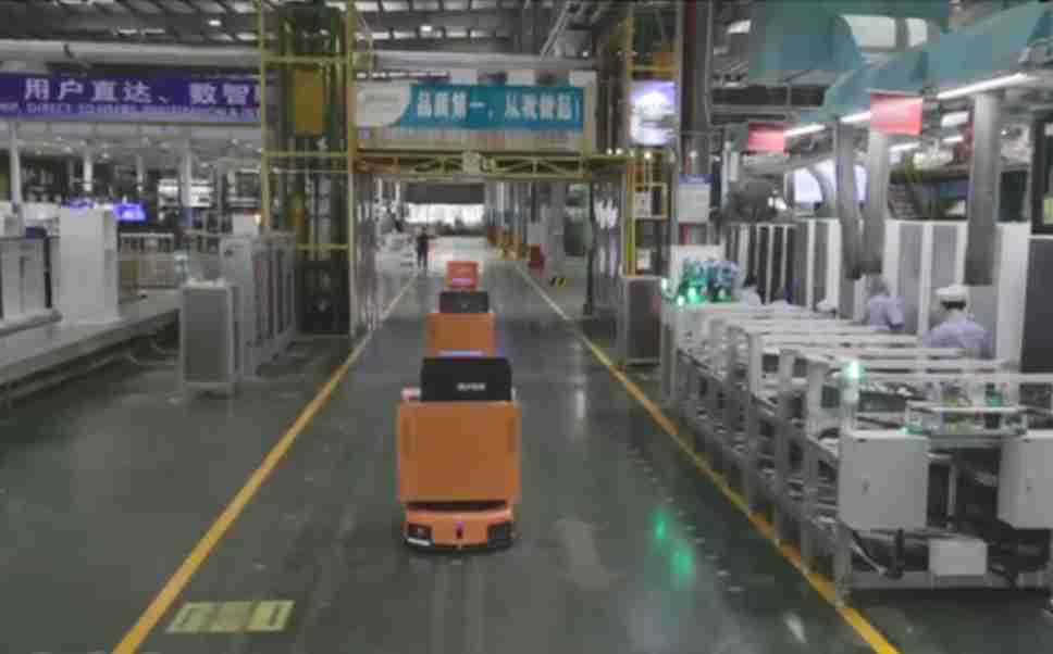 为车载冰箱物流配送打造的智能解决方案,,包含产中物流通过潜伏举升AMR搬运至线边,,,,产后成品物流智能仓储,,流程包含产中物流智能齐套入库,,,线边安灯叫料AMR智能配送至线边,,,成品入库、、、出库,,通过无人堆高车机器人,,,,智能仓储管理替代人工作业管理,,实现更高存储、、、更高效率、、、更具柔性化的解决方案。。